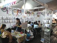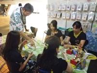 LeinaniのWSブースでは、「リボンで遊ぼう!」というテーマで、レインボーカラーのハートが可愛いサンキャッチャーや、ユラユラと風に揺れるトロピカルなフィッシュモビール、砂糖菓子のようなコンフェッティストラップ、かぎ針で簡単に作れるフルーティーサマーレイの4作品を課題にさせていただきました。そして今回初の試み、ハワイの伝統工芸であるラウハラを使ってブックマーク作りもしました。カラフルなリボンやヤーンからいろいろなカタチに変わる手作りの楽しさ・面白さを感じていただけていたら、嬉しく思います。ご参加いただきました皆様、ありがとうございました。そして、ブースにお立ち寄りくださりお声掛け下さった方々もありがとうございました。