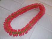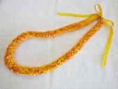 NO.3226 製作者:Mamiko.Iさん レイ:「ロイヤルイリマ」 コメント:はじめ失敗してやり直しました。赤のフリンジが気長にやらないと切れてしまったりして大変でした。時間をかけた分お気に入りです。 |