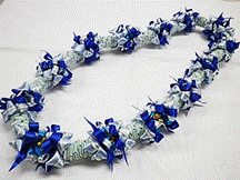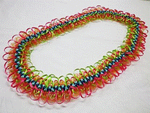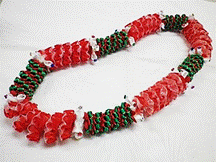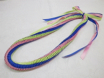 製作者:Naomi.Sさん レイ:「スィートバタフライ」 コメント:作る前はすごく難しいのでは?と思っていましたが、法則がわかればすいすいできるレイでした。色合いもかわいくて作っていて楽しかったです。 |