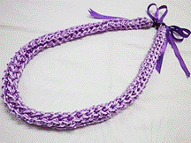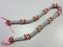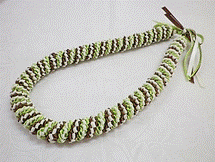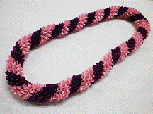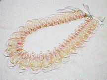 製作者:Keiko.Aさん レイ:「ラットテール・クラウンフラワー」 コメント:コードの編み加減が難しかったです。レイになったらすてきでした。 |