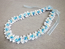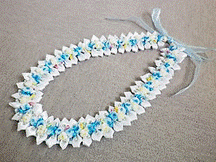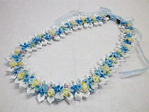 NO.3417 製作者:Yoshimi.Iさん レイ:「ベイビーシャワーレイ」 コメント:端の仕上げの方法がかわいかったです。 |