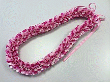 NO.3416 製作者:Yoshimi.Iさん レイ:「オーキッド」 コメント:リボンの色がかわいくて作っていて楽しかったです。 |