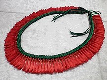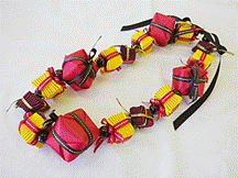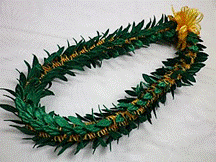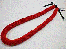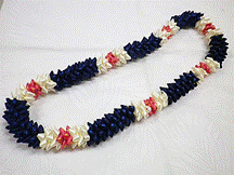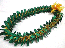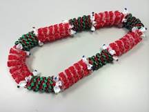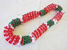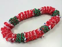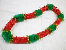 製作者:Harumi.Sさん レイ:「ハウオリ・ラーヌイ」 コメント:スターリーフを作るのが大変でした。またそれを通すのに、きれいにできませんでした。クリスマスカラーでした。 |