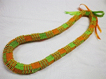 NO.3449 製作者:Chiho.Sさん レイ:「ジンジャー」 コメント:下準備が大変でしたが、できあがりはとても美しいレイです。 |