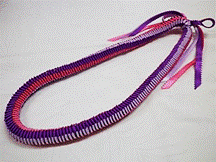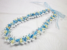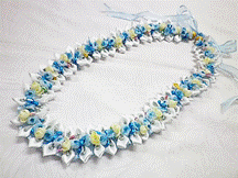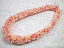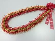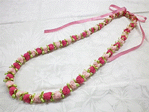 製作者:Michiyo.Kさん レイ:「チェリーブロッサム」 コメント:リボンをかたく織り過ぎたかなと…。で薄ピンクとピンクのリボンでとてもラブリーなレイに仕上がりました。 |