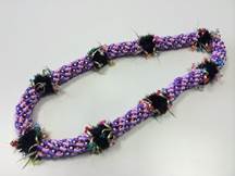 NO.3441 製作者:Naomi.Sさん レイ:「ラットテール・クラウンフラワー」 コメント:編み始めは少し難しかったですが、編み方がわかるとスイスイ編めました。レッスン時間内に完成できて嬉しかったです。 |