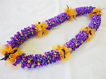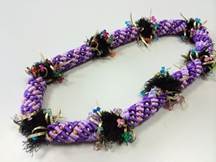 製作者:Michiyo.Kさん レイ:「パープルウイッチ」 コメント:プッシュする時にレインボーリボンをきれいに出すのが難しかったですが、楽しくレイ作りできました。 |