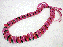 NO.3583 製作者:Chiemi.Oさん レイ:「ナープアモハラ」 コメント:見ただけでとても感動したレイ でした。楽しく作れ、かわいいレイが できました。 |