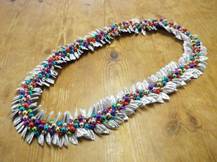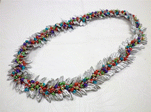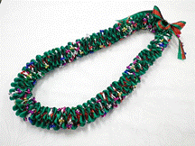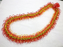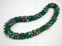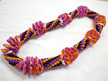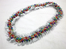 NO.3581 製作者:Chiemi.Oさん レイ:「ホーリー」 コメント:ビーズの指し方が違ってしまった ので、又楽しく作り直します。今年のフラの パーティーはこれで決まり! |