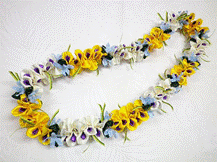 NO.3570 製作者:Naomi.Sさん レイ:「ロケラニのウェディングレイ」 コメント:パールをバランスよくからませるのが むずかしかったですが、華やかなレイで気に 入っています。 |