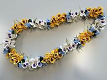 NO.3580 製作者:Naomi.Kさん レイ:「ディライトフル・ペタル」 コメント:色の組合せがステキなレイです。 花びらの並べ方に少し悩みました。 |