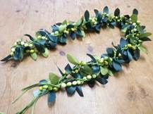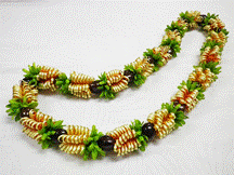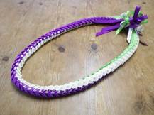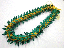 NO.3587 製作者:Naomi.Sさん レイ:「マイレ&モキハナ」 コメント:巻いたところがゆるまないように葉を はさむのが少しむずかしかったです。 |