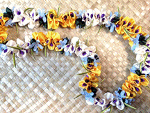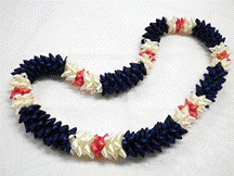 NO.3615 製作者:Kaoru.Yさん 日にち: レイ:「マレアナレイ メリカリキマカバージョン」 コメント:蝶の柄のリボンがとても可愛いレイ です。作っていて 楽しいれいです。 |