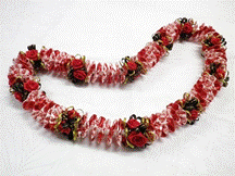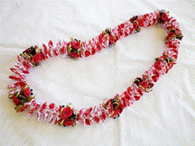 NO.3622 製作者:A.Fujisakiさん 日にち:2016年2月13日 レイ:「ビタースィートローズ」 コメント:バラの横の茶色のハートが可愛い レイです。 |