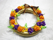 NO.3607 製作者:岩松好美さん 日にち:2016年1月25日 レイ:「ハーベストシーズン」 コメント:リボンをきれいに巻くのに苦労 しましたが、パーツを作るのは楽しかったです。 |