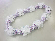 NO.3691 製作者:Chiho.Sさん(石川町教室) 日にち:2017年2月15日 レイ:「ナーカイマウナロア」 コメント:早くできて、ゴージャスに見えるレイ で気に入ってます。 |
