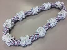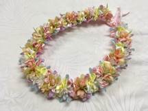 NO.3697 製作者:C.Suganoさん(石川町教室) 日にち:2017年3月18日 レイ:「U’ilani Hawaii」 コメント:虹の編み方がわかるまで大変 でしたが、明るくてかわいいレイです。 |