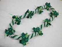 NO.3698 製作者:C.Suganoさん(石川町教室) 日にち:2017年4月19日 レイ:「セントパトリックスデー」 コメント:クローバーを作るのに少し苦労しました が、作っていて楽しいレイでした。 |