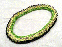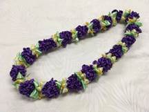 NO.3729 製作者:Takako.Yさん(大阪教室) 日にち:2017年10月1日 レイ:「セントパトリックスデー」 コメント:クローバー作りに苦戦しましたが、 爽やかで可愛いレイ。 |