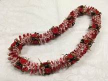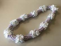 NO.3737 製作者:Naomi.Sさん(石川町教室) 日にち:2018年11月15日 レイ:「4ウィーブ・アリイ」 コメント:写真で見ただけでは想像できない 作り方で驚きました。短時間で出来上がるのも嬉しいです。 |