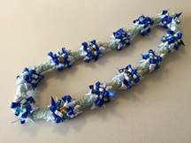 NO.3724 製作者:Chiemi.Oさん(教室) 日にち:2017年9月20日 レイ:「ブルージンジャー」 コメント:花の形を整えるのが難しかったですが、珍しい花のレイができ嬉しいです。 |