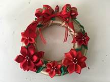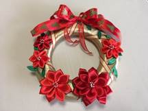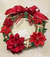 NO.3739 製作者:Chiemi.Oさん(平塚教室) 日にち:2018年12月10日 レイ:「ポインセチア・リボンリース」 コメント:大好きなポインセチアのリースがまた 増えました。花の形が美しく楽しく作りました。 ヘアピンも沢山作りフラ仲間にプレゼント しました。 |