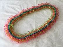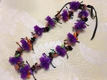 NO.3721 製作者:Kayoko.Iさん(教室) 日にち:2017年9月20日 レイ:「モハラ」 コメント:本来はBagチャームですがチョーカーになるように作りました。好きな色だしカワイイので、いつか作ったレイを着けて踊りたい(笑)。 |