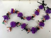 NO.3748 製作者:Kayoko.Iさん(石川町教室) 日にち:2018年1月14日 レイ:「ダンシングハロウィンドール」 コメント:四角いリボンが人形になっていくのが 嬉しくて、作業中からずっと「カワイイ♡」と思っていました。1周分揃うとカラフルで、見ていて飽きないので作って良かったです。 |