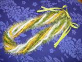 コメント:くさり編みだけで、こんなカワイイレイが出来上がりましたぁ。とっても簡単でビックリでした。