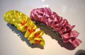 コメント:初めてのレイ作り体験、色々なリボンや編み方があるようで、さらに興味深々です。ありがとうございました。