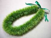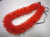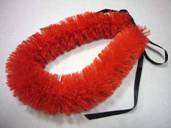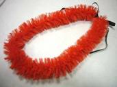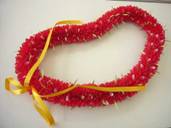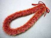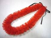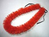 NO.534 コメント:リボンを裂くのは大変でしたけど、レフアの赤いお花がいっぱいで、ステキなレイが出来ました。 |