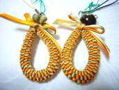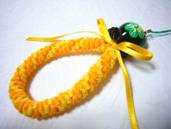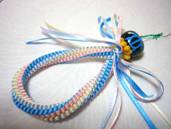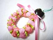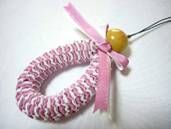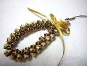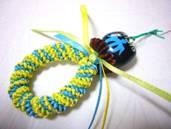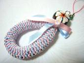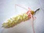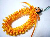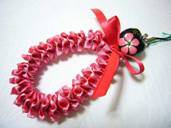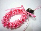 NO.719 コメント:初めて作ったリボンレイです。レイ作りは大変そうと思っていたのに、簡単にかわいいレイができて、嬉しいです。たくさんストラップにしてプレゼントしました。 |