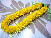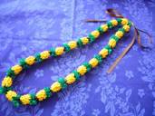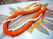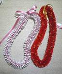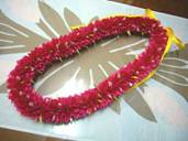 NO.712 コメント:一番最初に挑戦したレイですが、とてもかわいくできました。間に花とか何もないので、たくさん縫う所があって、すごく大変でした。 |