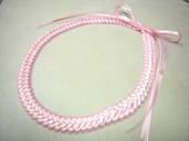 NO.764 コメント:針も糸も使わない編むリボンレイ。光沢もステキに出来上がりました。山本先生の「リボンレイの本」を見て、ずっと作りたいと思っていたので、とても嬉しいです。 |