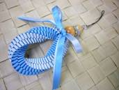 NO.778 コメント:始めははちょっととまどいましたが、コツがわかれば楽しく作ることができました。夏っぽく涼しげなレイができて嬉しいです。 |