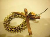 NO.826 コメント:リボンを縮めていく時の新しいやり方を教えていただいたので、大きいけどなんとかうまく仕上げることができました。かわいいレイが出来てうれしいです。 |