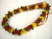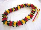 コメント:初めて、お教室に参加して作ったレイです。色もキレイで楽しかったです。