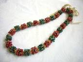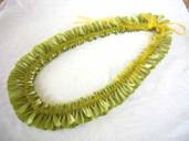 コメント:黄色いトリビーズがキラキラ光って、緑に映えます。また好きなレイが1つできました。