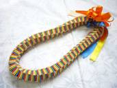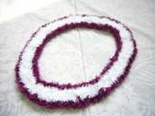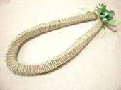 コメント:仕上がりがフワフワで、かわいいレイになりました。いつも硬く編んでしまいがちなので、やわらかく編むのに少々苦労しました。