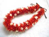 コメント: このレイは本物そっくりなのには驚きました。実際に身につけてみると、自分で言うのもなんですが、しっくりくる不思議なレイだと思います。これまた大好きなひとつになりました。