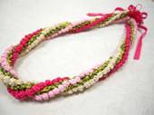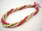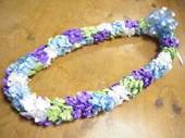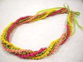 NO.1995 製作者:Masami.Aさん コメント:サテンリボンの色合せがとても可愛く、ゆるくツイストした感じが良い雰囲気になっているレイです。 |