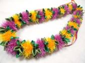 NO.2011 製作者:Izumi.Hさん コメント:リボンをさいて、ちぢめて。この作業がとても好きです。色もとってもキレイ!大好きなレイの一つがまたふえました。 |