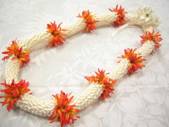 NO.2039 製作者:Miyuki.Iさん コメント:準備は大変でしたが、レイを作るのは早くできました。最後の仕上げの縄網みに苦戦しました。出来上がらはボリュームがあっていい感じです。 |