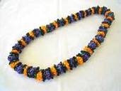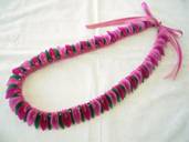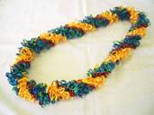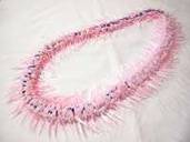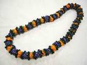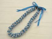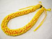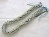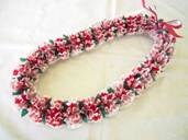 NO.2182 製作者:Kyoko.Oさん レイ:「マヌオオ」 コメント:リボンがからまって苦労しましたが、かわいいレイが出来てうれしいです♪ |