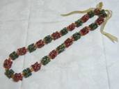 NO.2192 製作者:MASAEさん レイ:「デイジーループ」 コメント:根気がいるレイです。そろえて縫っていってもずれてしまい、少し納得のいかない出来になってしまいました。 |
