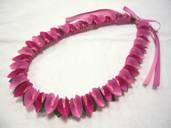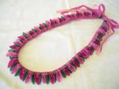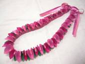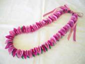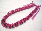 NO.2175 製作者:Yuka.Oさん レイ:「フル」(ピンク) コメント:リボンと花弁を切ってしまえば、あとは印つけもなく、スイスイ作れました。 |