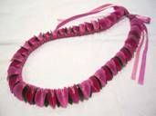 NO.2184 製作者:Hiromi.Tさん レイ:「アンスリウム」 コメント:作るのも飾るのも楽しいレイだと思います。 |