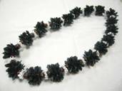 NO.2171 製作者:Mariko.Bさん レイ:「クリスマスパイン」 コメント:ループの長さによって表情が変わるレイでした。ちょうどいい長さにループを調整するのが少し難しかったです。 |