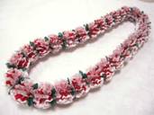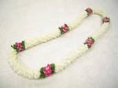 NO.2261 製作者:Hiromi.Tさん レイ:「プアケニケニ」 コメント:花びらをふっくらと丸く作るのがむずかしかったです。シンプルなデザインのすてきなレイなので、色違いも作りたいです。 |