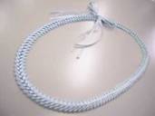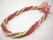 NO.2259 製作者:Saiko.Tさん レイ:「ツイステッドローズ」 コメント:リボンを編み込む位置に迷いながらも、完成したらキレイなラインになっていてよかったです。 |
